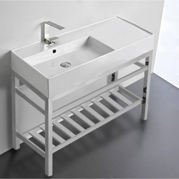 Teorema 2-Ceramic Console Sink Basin in White with Chrome Legs