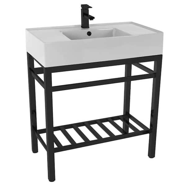 Teorema 2 Ceramic White Console Sink and Leg Combo in Matte Black