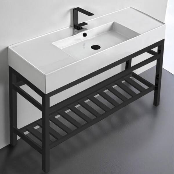 Teorema 2-Ceramic White Console Sink and Leg Combo in Matte Black