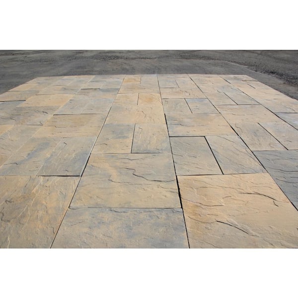 Patio-on-a-Pallet 10 ft. x 10 ft. Concrete Tan Variegated Basket weave Yorkstone Paver (37 Pieces/100 Sq. Ft)