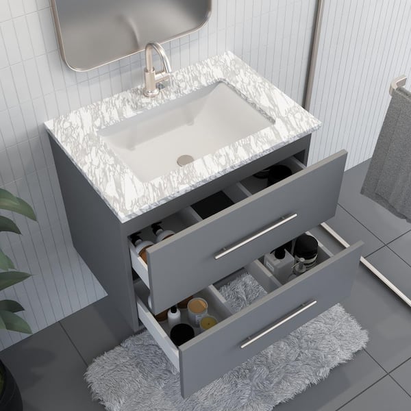 Napa 30 in. W. x 22 in. D Single Sink Bathroom Vanity Wall Mounted in Gray with Carrera Marble Countertop