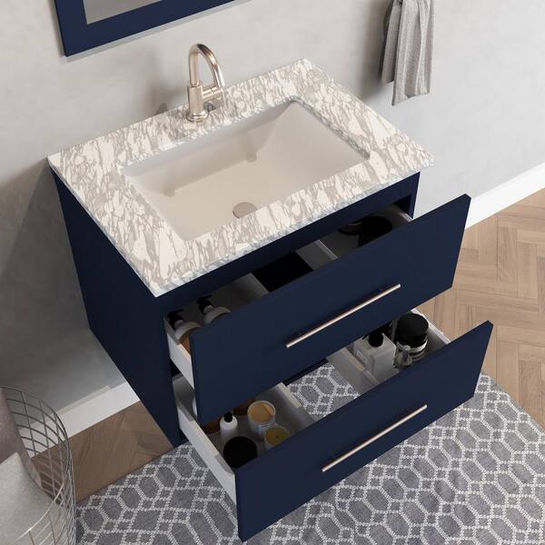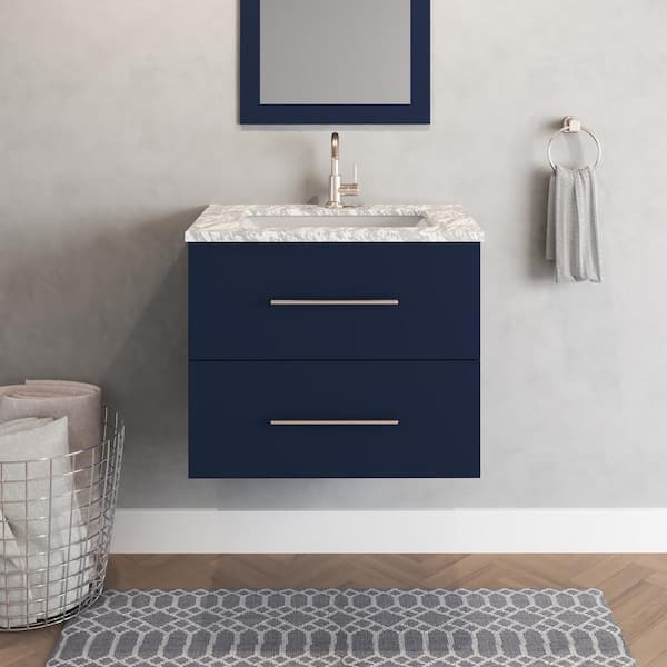 Napa 30 in. W. x 22 in. D Single Sink Bathroom Vanity Wall Mounted in Navy Blue with Carrera Marble Countertop
