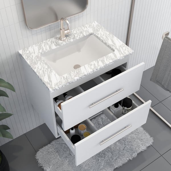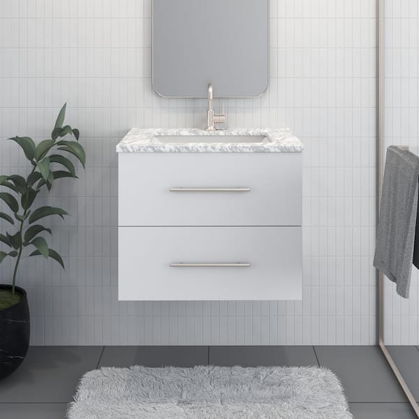 Napa 30 in. W. x 22 in. D Single Sink Bathroom Vanity Wall Mounted in White with Carrera Marble Countertop