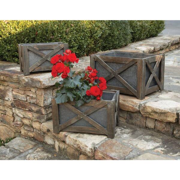 35 in. x 13 in. Gray Galvanized Wooden Planter (Set of 3)