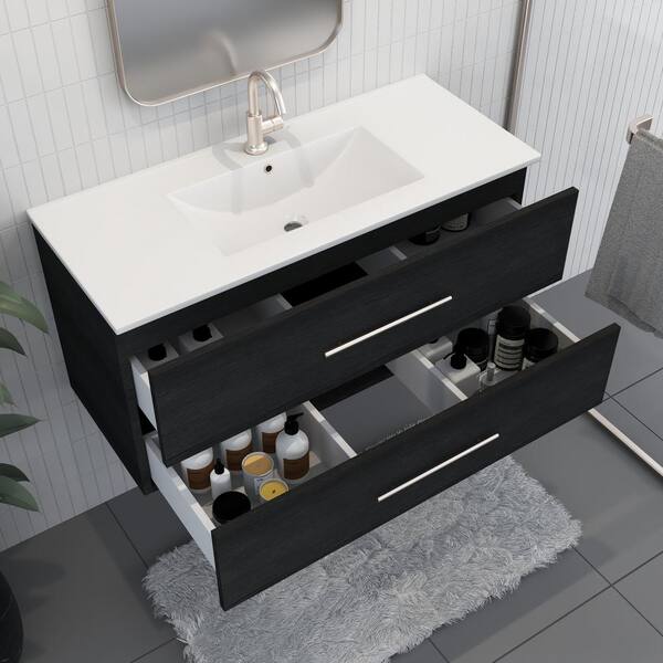 Napa 40 in. W. x 18 in. D Single Sink Bathroom Vanity Wall Mounted in Black Ash with Ceramic Integrated Countertop