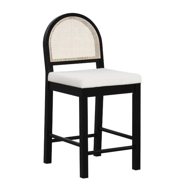 Bailey 24 in. Upholstered Boucle Rattan and Wood Counter Height Bar Stool w/ Woven Back, Cream Boucle/Black Oak