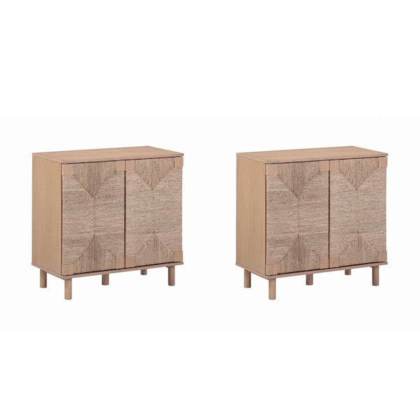 Beacon Boho Raw Oak 31 in. Seagrass Accent Cabinet with Adjustable Shelf, Solid Wood Legs & Seagrass Doors, Set of 2