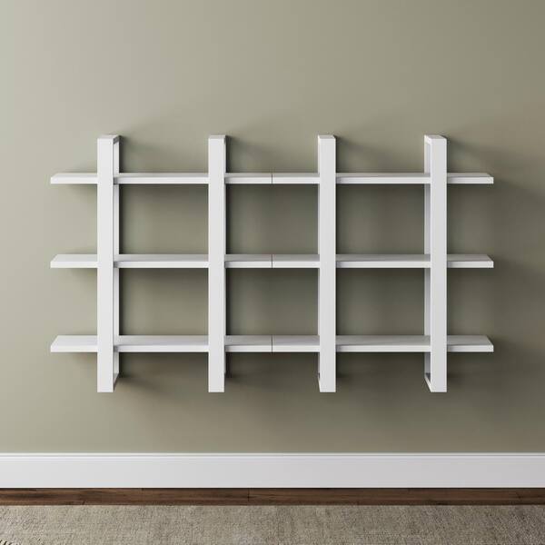 Benji 32 in. Floating Wall Bookcase, 3-Tier Display Shelf, Decorative Modular Shelf in Solid Wood, Set of 2