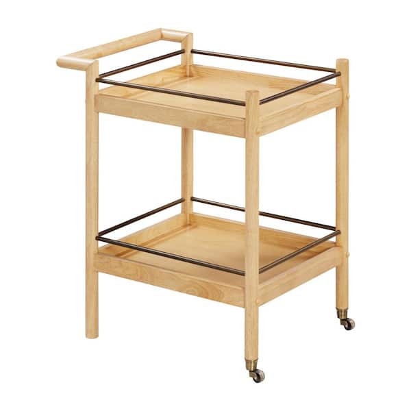 Farley Warm Pine Modern Bar Cart with Solid Wood Frame and Metal Guard Rails