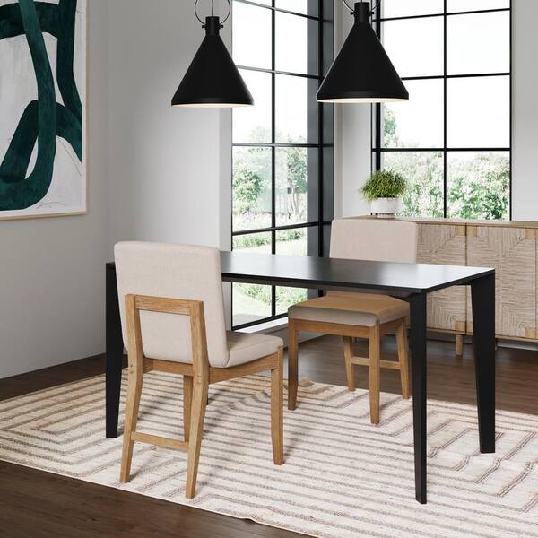 Gracie 18 in. Modern Wood Upholstered Accent Dining Chair, Natural Flax/Light Brown, Set of 2