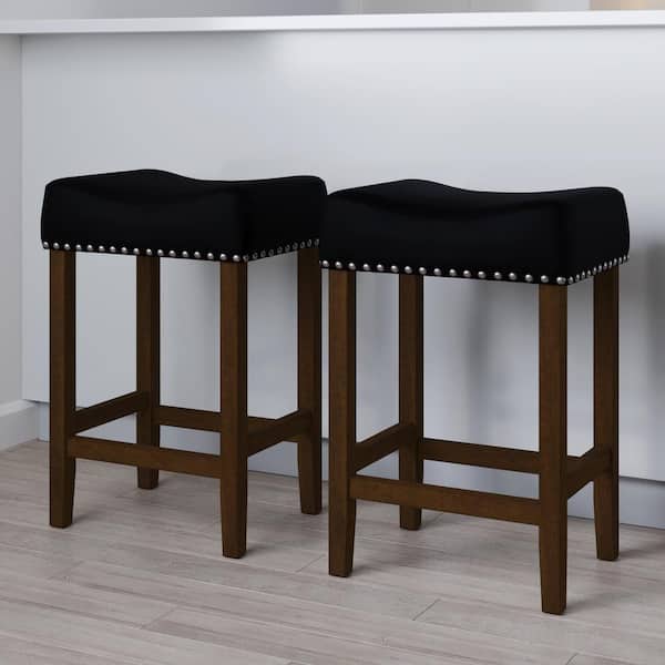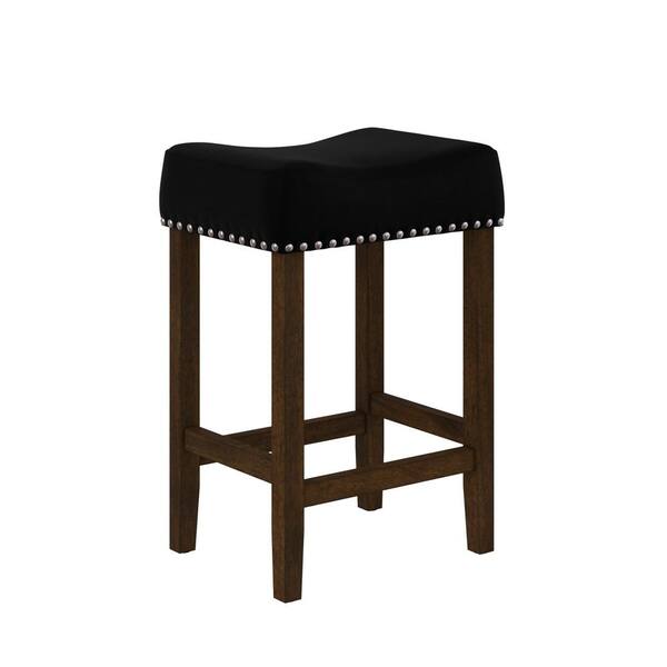 Hylie 24 in. Nailhead Wood Counter Height Bar Stool Black Fabric Cushion Dark Brown Finish, Set of 2