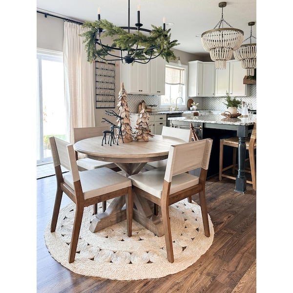 • Natural flax upholstery offers a modern farmhouse design