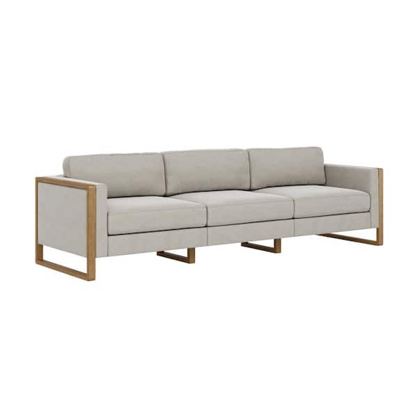 Madison 107 in. W Straight Arm Fabric Modern Modular 3 Seat Sectional Sofa in. Sand/Light Brown with Solid Wood Legs