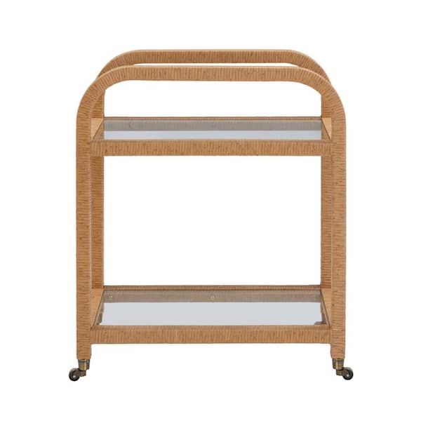 Tanner Bohemian Bamboo Rattan Serving Cart with Designer Caster Wheels and Tempered Glass Rack