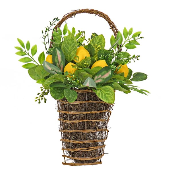 21 in. Artificial Leafy Greens and Lemons Wall Basket