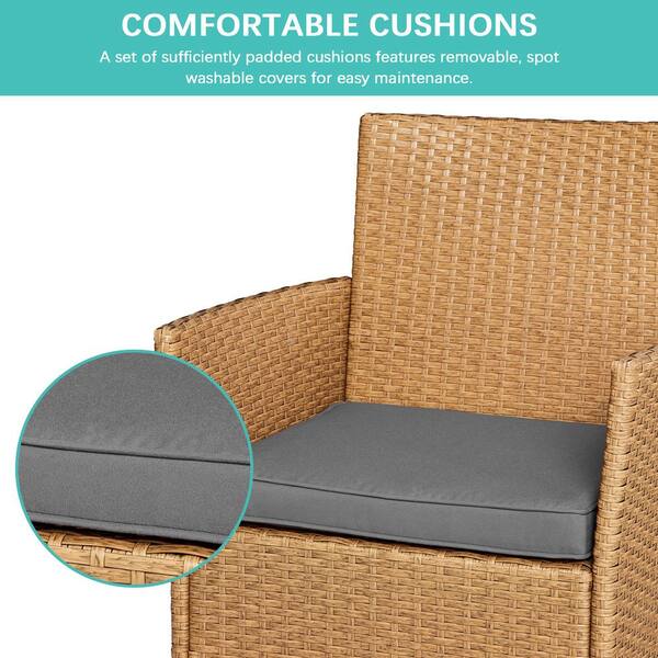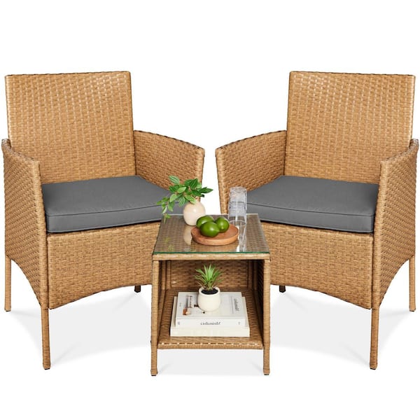 Natural 3-Piece Wicker Outdoor Bistro Set with Gray Cushion