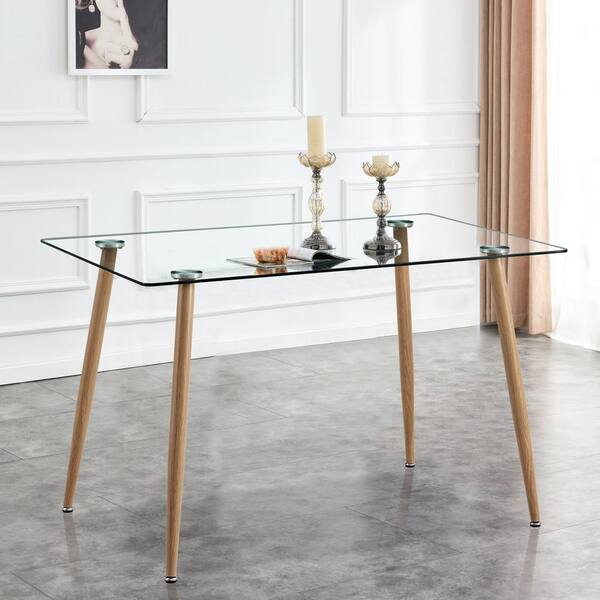 Natural 47 in. Tempered Glass Top 4 Legs Dining Table for 6 with Coating Metal Frame Writing Table Desk