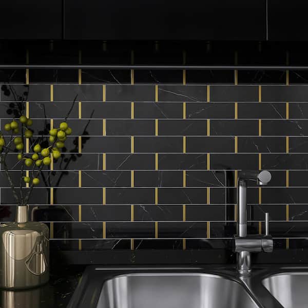 Natural Blanco Black Gold 11.86 in. x 11.54 in. Brick Joint Polished Marble Mosaic Tile Sample