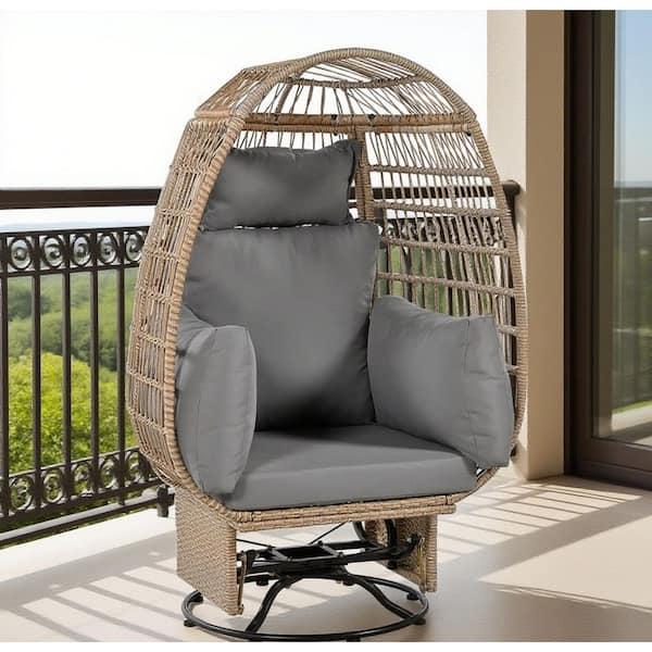 Natural Brown Wicker Outdoor Rocking Chair with Gray Cushion, Egg Chair with Rocking Function