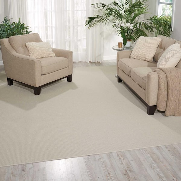 Soft, beige low pile loop carpet with texture