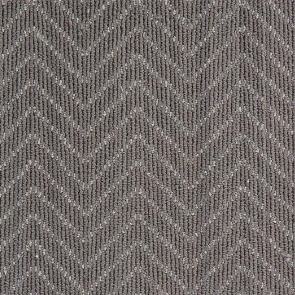 Soft, gray low pile herrinbone pattern carpet with texture