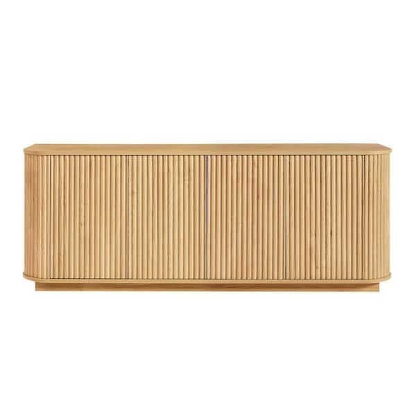 Natural Particle Board 64 in. Sideboard Buffet Cabinet 4-Doors Modern Accent Cabinet Console Cabinet with Wave Pattern