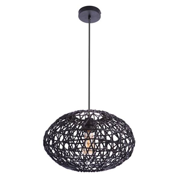 Natural Pendant 60-Watt 1-Light Flat Black Dining/Kitchen Island Foyer Pendant Light with Rattan Shade No Bulbs Included