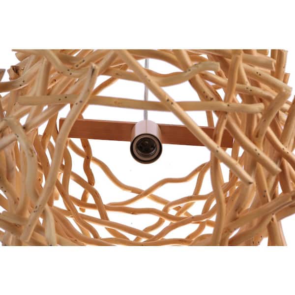 Natural Pendant 60-Watt 1-Light Natural Finish Dining/Kitchen Island Foyer Pendant Light w/ Wood Shade No Bulb Included