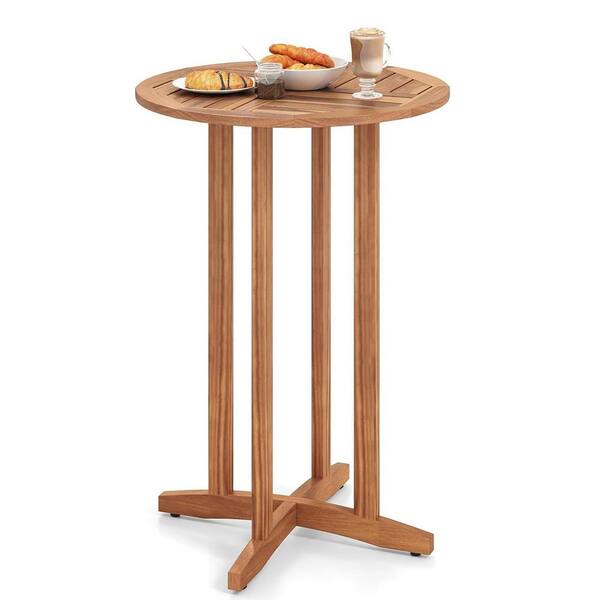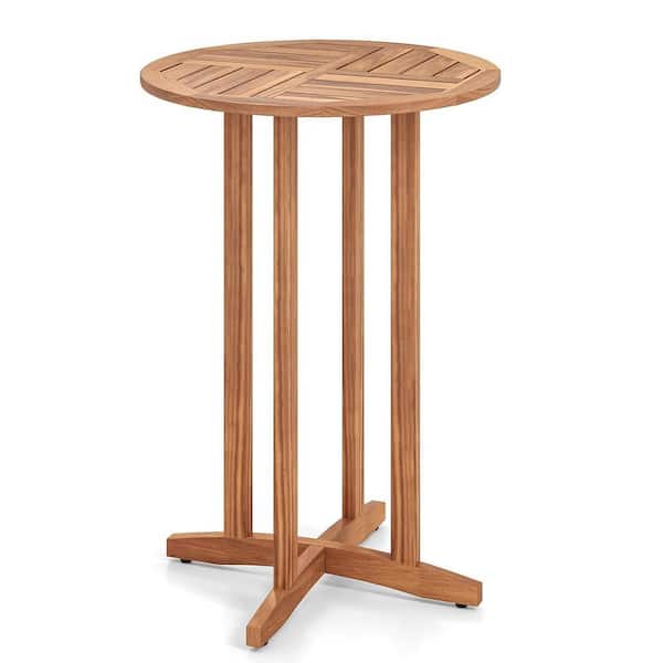 Natural Round Wood Outdoor Bistro Table with Slatted Tabletop