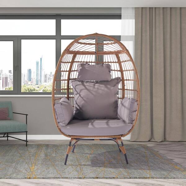 Natural Steel Wicker Outdoor Lounge Chairs with Light Grey Cushions for Patio, Backyard