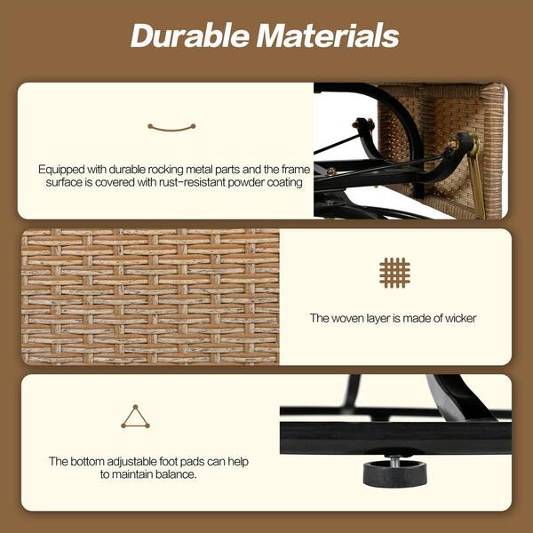 Natural Swivel Wicker Outdoor Lounge Chair, Rattan Egg Patio Chair with Rocking Function with Cream Cushions