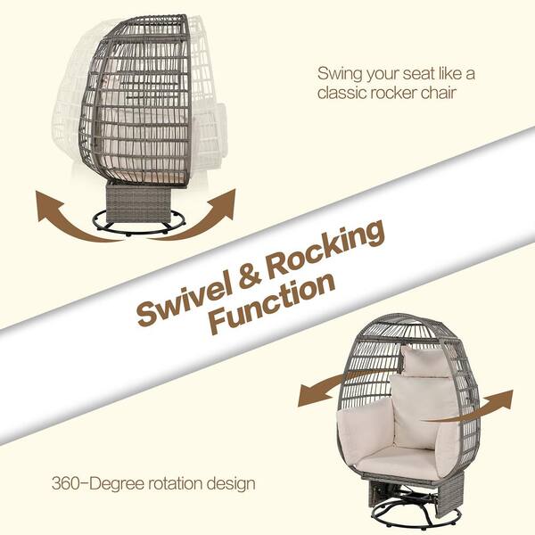 Natural Wicker Outdoor Rocking Chair Rattan Egg Chair with Beige Cushions and Rocking Function