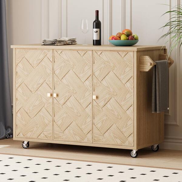 Nature Wood 51.2 in. W Rolling Kitchen Island 3D Wave Stripes with Drop Leaf