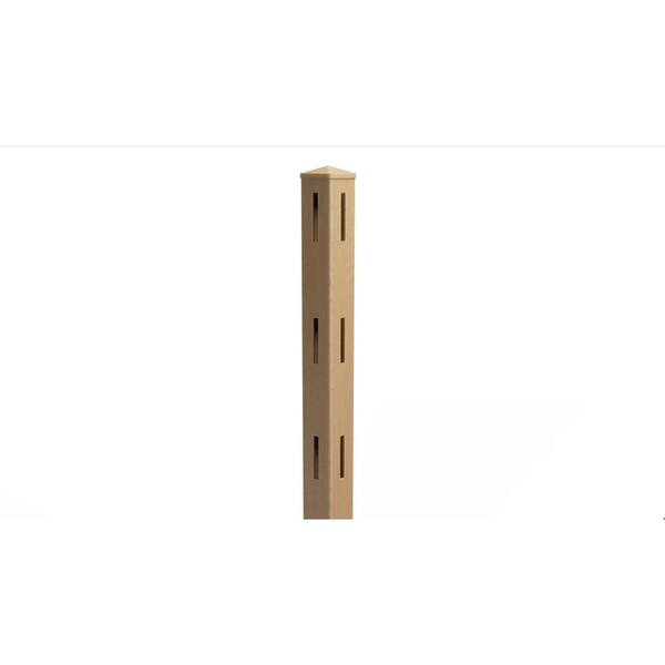 Composite 3-Rail Corner Post with Post Cap for Traditional Ranch Rail System (5 in. x 5 in. x 65 in. L) Timber Brown