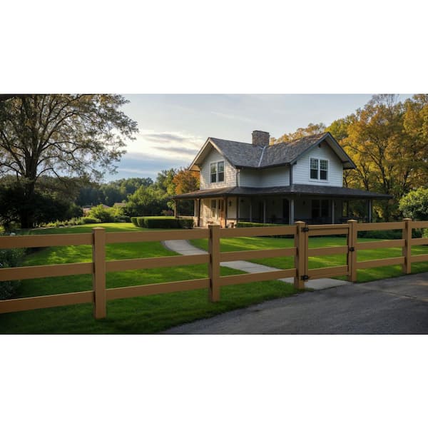 Composite Traditional Three Board Ranch Rail Fence Panel (4 ft. H x 5.75 ft. W) Timber Brown