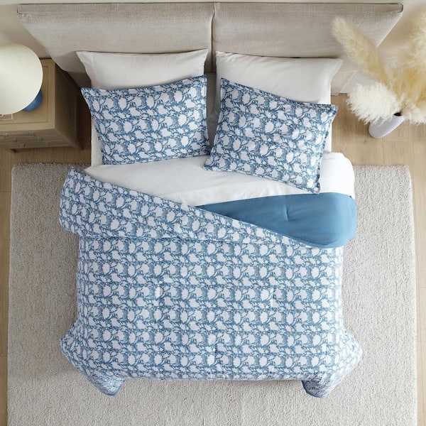 Bayport Floral 3-Piece Dark Blue Cotton King Comforter Set