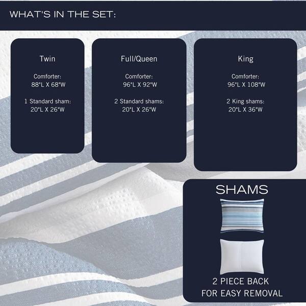 Bradlee Grey/Blue 3-Piece Microfiber King Reversible Comforter Sham Set