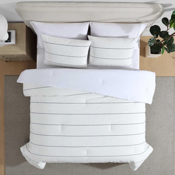 Naval Stripe 3-Piece Navy/White Cotton Slub Full/Queen Comforter Set