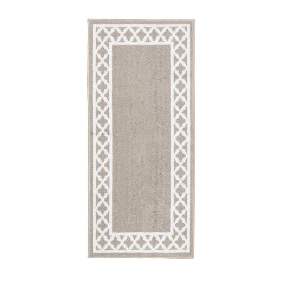 Washable Skid Resistant Light Grey/White 2.2 ft. x 5 ft. All Loop Tufted Area Rug