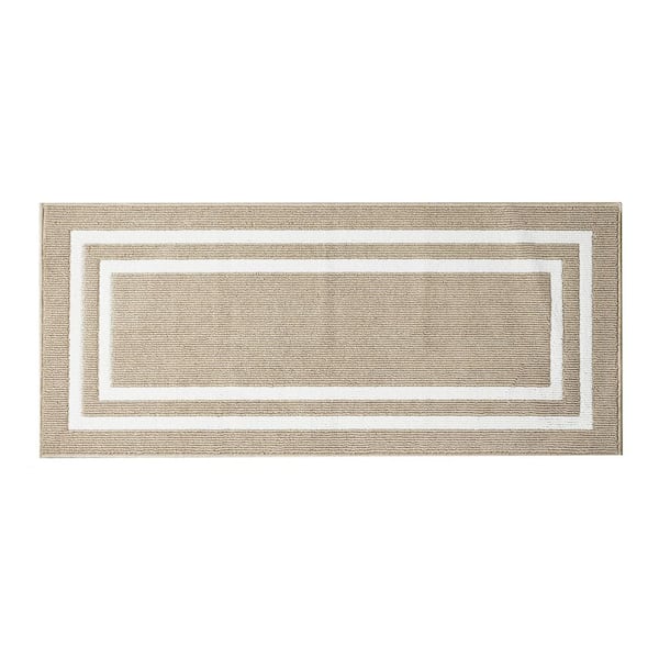 Washable Skid Resistant Beige /White 2.2 ft. x 6 ft. All Loop Tufted Area Rug