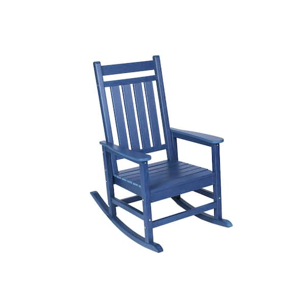 Navy Blue Oversized Plastic Outdoor Rocking Chair All Weather Resistant Porch Rocker for Lawn Garden