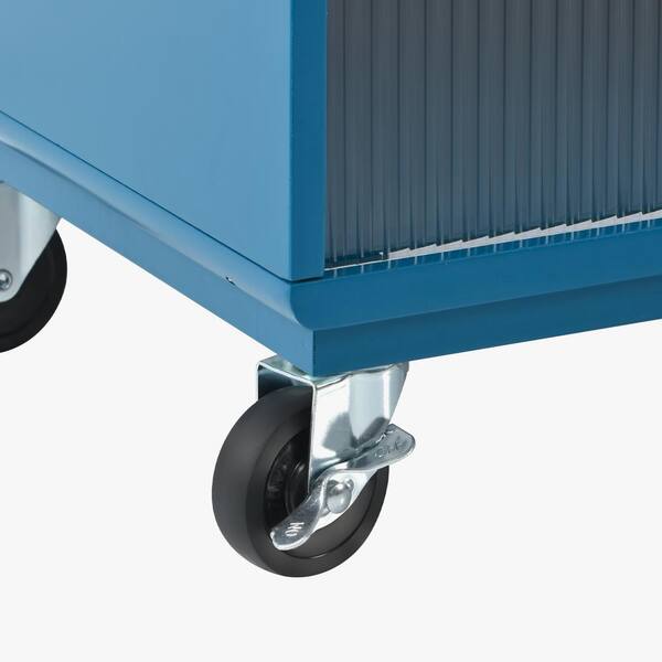 Navy Blue Rubber Wood Kitchen Cart with Drop Leaf, 2-Cabinet, LED Light and Power Outlets