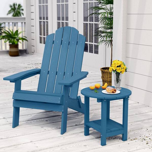 Navy Round Plastic Outdoor Side Table with Storage Shelf