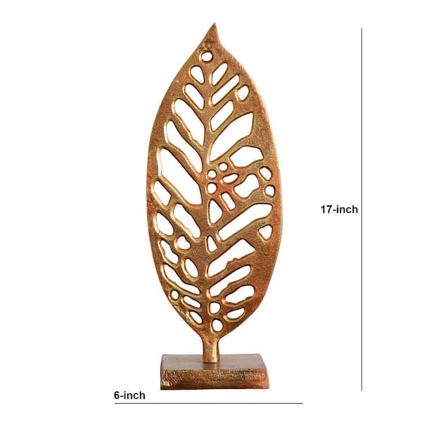 17 in. Copper Leaf Metal Beech Sculpture Decorative Accent