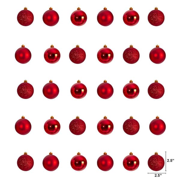 2.5 in. Shatterproff Holiday Christmas Ornament Set with Re-Useable Storage Container (30-Pack)