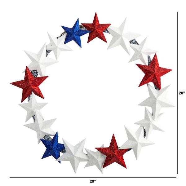 21 in. Artificial Americana Wreath with Stars Red White and Blue