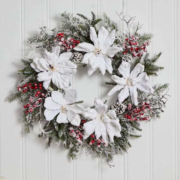 22 in. Artificial Snowed Magnolia and Berry Wreath