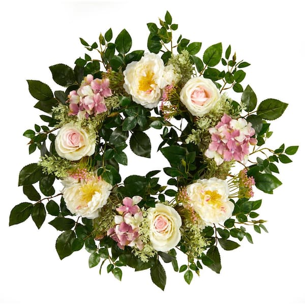 22 in. Mixed Rose and Hydrangea Artificial Wreath