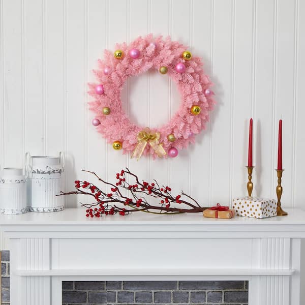 24 in. Pink Pre-Lit Artificial Christmas Wreath with 35 LED Lights and Ornaments