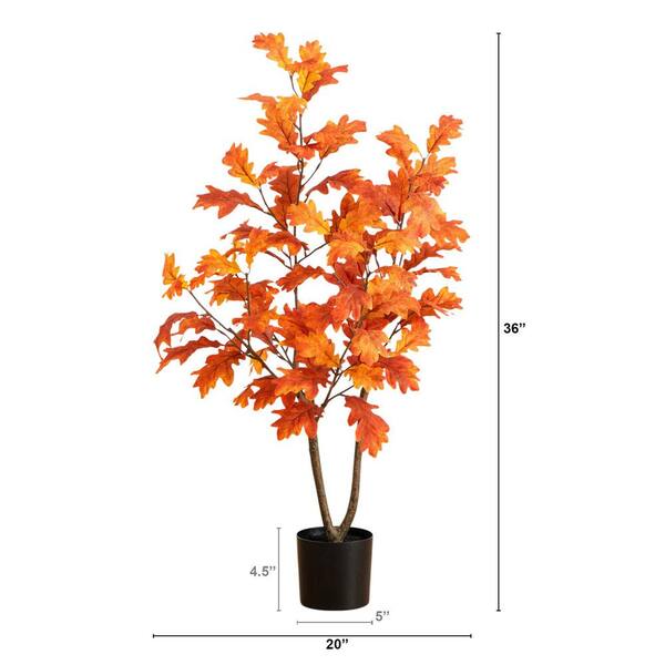 • Realistic autumn oak tree with orange, yellow and brown leaves